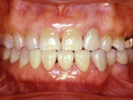 昔なら前歯に金冠【きんかん】(歯全体に被せる、金で作った被せ物)を被せた治療がステイタスであったのではないでしょうか。ところが現在では、より天然の歯に近く、しかも歯並びも良くしたいという感覚になってきています。